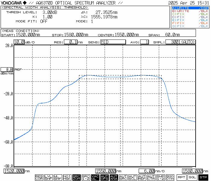 光谱范围 | nm | 1528~1568 | 20dB范围 |
